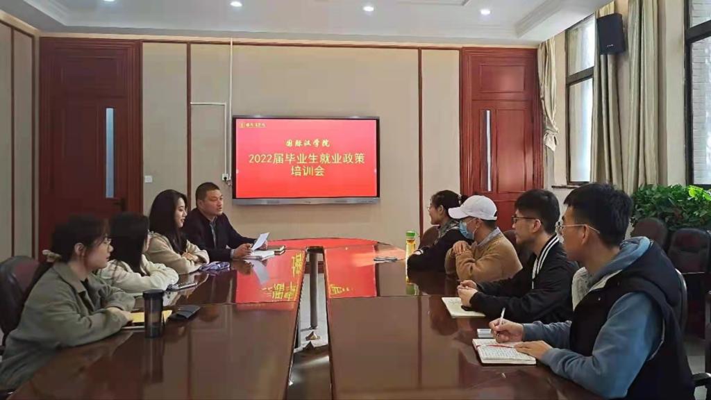 一层报告厅召开2022届毕业生就业工作推进会。团总支书记兼研究生辅导员朱红楠、研究生兼职辅导员肖扬及2022届毕业生参加了本次会议。