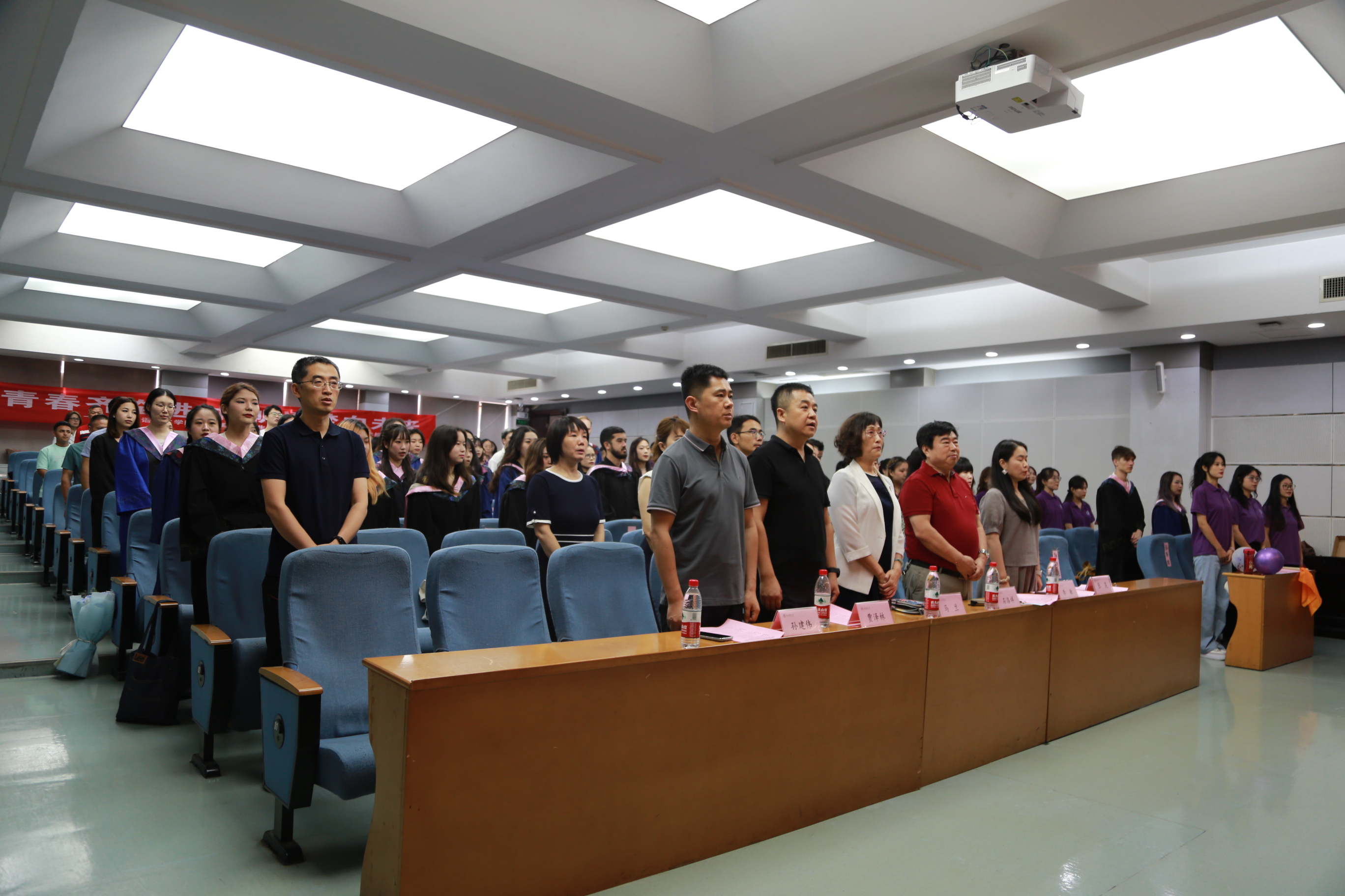 党总支副书记张昊宣布典礼开始,全体与会人员起立,奏唱国歌。