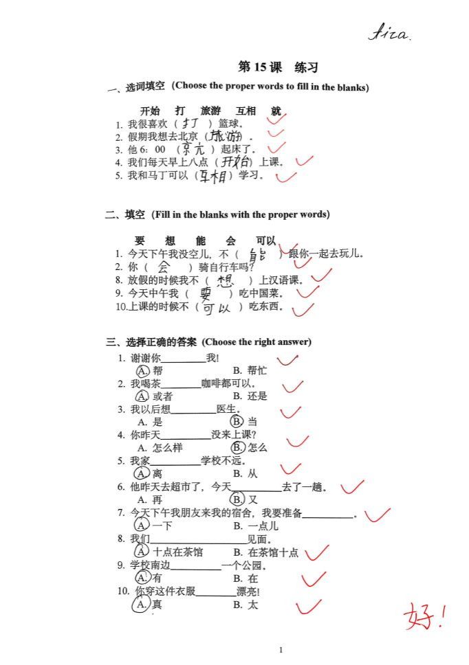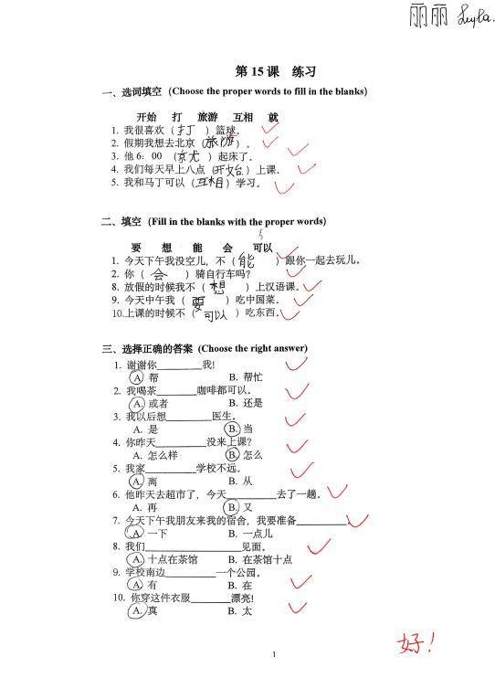 3.学生:夏月琳  班级:HSK0-3(1)班  指导老师:鱼茜