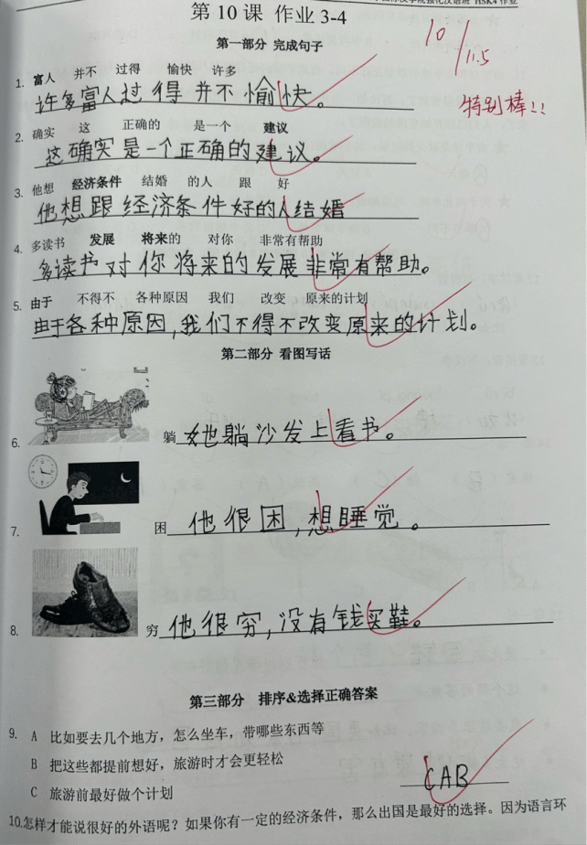 · 进阶阶段(HSK4-5, B):从字到句的飞跃。组词造句中,语法被巧妙内化;主题写作里,思想开始自如流动。语言的工具性,正在转化为表达的力量。