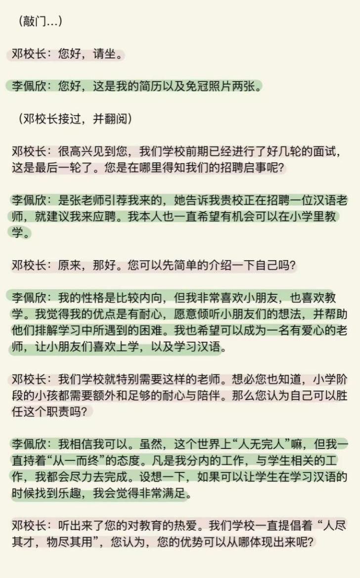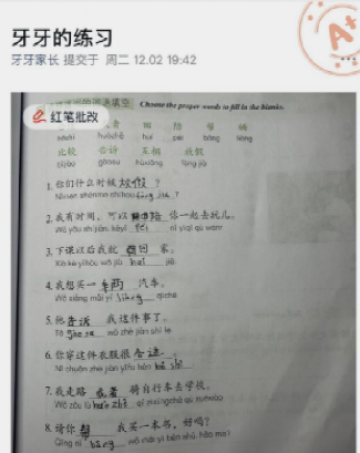 4.学生:小琳  班级:HSK0-3(1)班  指导老师:鱼茜