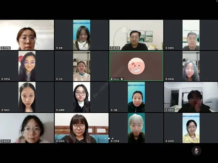 会议最后,与会志愿者们就关心的问题进行了热烈的在线交流与答疑,并通过线上合影的方式,为本次工作会议画上了圆满句号。此次会议不仅是一次行前教育,更是一次凝心聚力的动员会。与会志愿者们将以饱满的热情与专业的素养投身海外中文教学,为促进文明交流互鉴贡献青春力量。