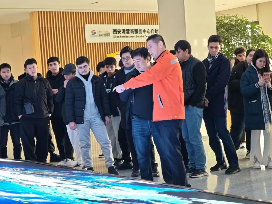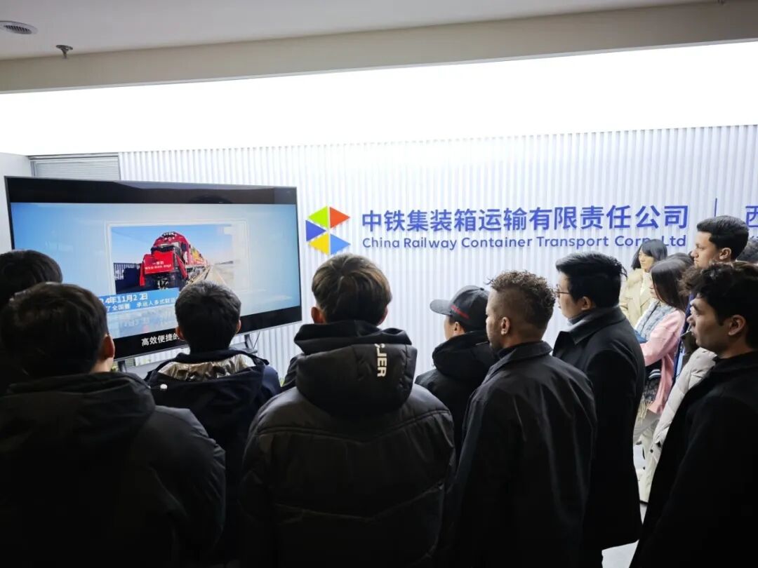 院长石洛祥、党总支书记李小玲、党总支副书记王钰、副院长贾泽林、团委书记翁思洁、留学生辅导员张欣元、留管干部刘小熊及20余名留学生前往西安中欧班列开展访企拓岗活动,先后走进中铁集装箱运输有限责任公司与港务区,沉浸式感受国际物流发展活力。