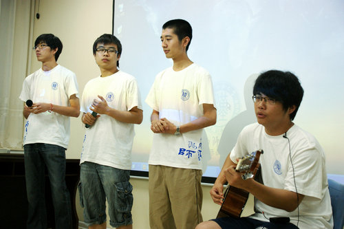 随后,文艺表演开始。泰国留学生与哈萨克斯坦留学生深情演绎《蓝色蝴蝶》,表达了对校园生活的连连不舍;2007级对外汉语专业全体毕业生集体合唱《再见》,用心的表演向观众完成了舞台上的青春告别。越南、俄罗斯、哈萨克斯坦留学生的《莫斯科郊外的晚上》将观众们带回了怀旧的时光。最后,阿米尔同学弹拨起了家乡的乐器冬不拉,随着音乐的悠扬跌宕,台上台下弥漫着离别的感伤气氛。
