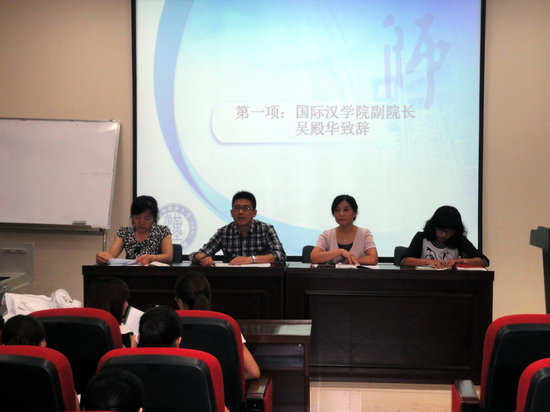 在会上,吴殿华副院长希望同学们勤于思考,善于发现,注重个人品德完善,珍惜有限的研究生学习时间,将自己打造成为学术个性彰显的新青年。研究生导师代表邵英老师亲切地为同学们具体讲解了对外汉语教师具备的素质标准,以张载的“四为句”祝愿大家学有所成。研究生秘书何建梅老师对同学们的具体课程安排进行了详细准确的说明。