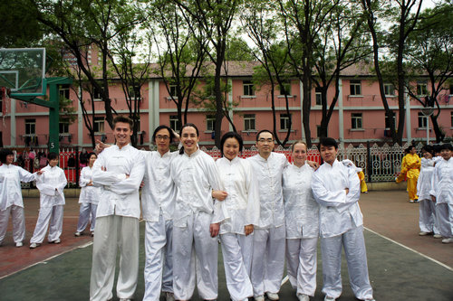 2009级政府奖学金生杨华星(美国)同学担任了太极拳方阵教练。杨教练在指导中,认真负责,态度严谨,技术精湛,得到大家一致的认可。中外学生们克服上课时间不一致等困难,利用节假日和课余时间,虚心学习,互相纠错,共同练习。在一起训练的日子里,来自美国、韩国、比利时、蒙古国、越南、哈萨克斯坦、中国的同学们结下了深厚的友谊。