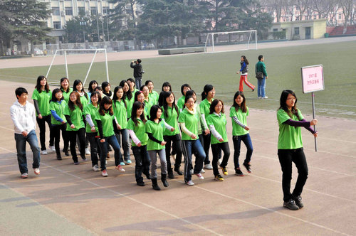 伴着运动员进行曲,由2007级对外汉语班、2008级对外汉语班、留学生普通班、留学生本科班、研究生班、澳大利亚埃迪斯科文大学短期培训班、美国教育联盟项目培训班7支队伍组成的方阵依次登场,向主席台上的老师领导挥手致意,展现各自风采。