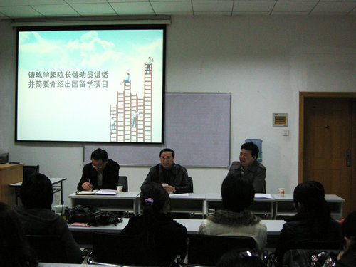 座谈会上,陈学超院长首先对大家做了动员讲话,他用自己的亲身经历向同学们传达了“安身立命且图勇,拼搏争先不等闲”的人生经验。他说:“世界是动态的,只要大家坚持理想,不断提升自我,就会有很多机会。”他希望大家的工作不仅成为一份谋生的工具,还要积极投身于社会竞争中,表现出自己最优秀的一面,就肯定能够实现自己的目标。此外,陈院长还向大家介绍了出国留学的时间安排及相关注意事项,并与大家共同分享了近期的留学及出国信息。