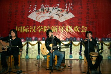 2007级对外汉语专业带来的《shining kiss》拉开了新年联欢会的序幕。活力青春、古灵精怪的动感舞姿,瞬时吸引了全场观众的目光。颇具创意的歌舞剧《罗密欧与林黛玉的爱情奏鸣曲》,既跨越了历史时空,又拉近了中西文化的距离。妙语连珠的相声,极具风雅的古诗文配乐朗诵、中外硕士研究生用歌舞演绎的《中国话》以及有“钢琴王子”之称的韩国留学生郑荣光、李起京带来的钢琴伴唱,为晚会增色不少!