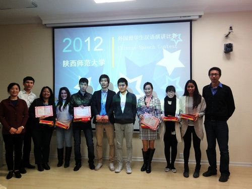 评委代表邵英老师在活动结尾做了点评。她说,学生们通过自己真实的经历展示了自己学习汉语的感受,用汉语分享自己对父母、对故乡的思念,这不仅是对学生们学习成果的展示,也是对老师们教学成果的展示。邵英老师肯定了学生们的精彩表现,鼓励学生们要更加努力的学习汉语,并预祝将代表我校参加陕西省留学生汉语演讲比赛的八位学生取得优异的成绩。