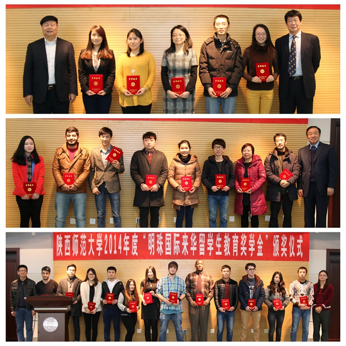 1月8日下午,2014年度“明珠国际来华留学生教育奖学金”颁发仪式在雁塔校区崇鋈楼闻道堂举行。陕西明珠国际集团董事长李继和、家居营运中心总经理刘鹏、赌博app下载