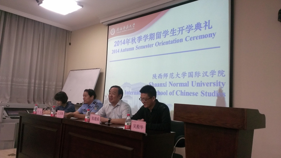 院长张建成、副院长刘琨、副院长吴殿华、办公室主任董军成、留学生管理办公室主任蔺丰辉、留学生代课教师代表张欲晓及近百名留学生新生出席了开学典礼。