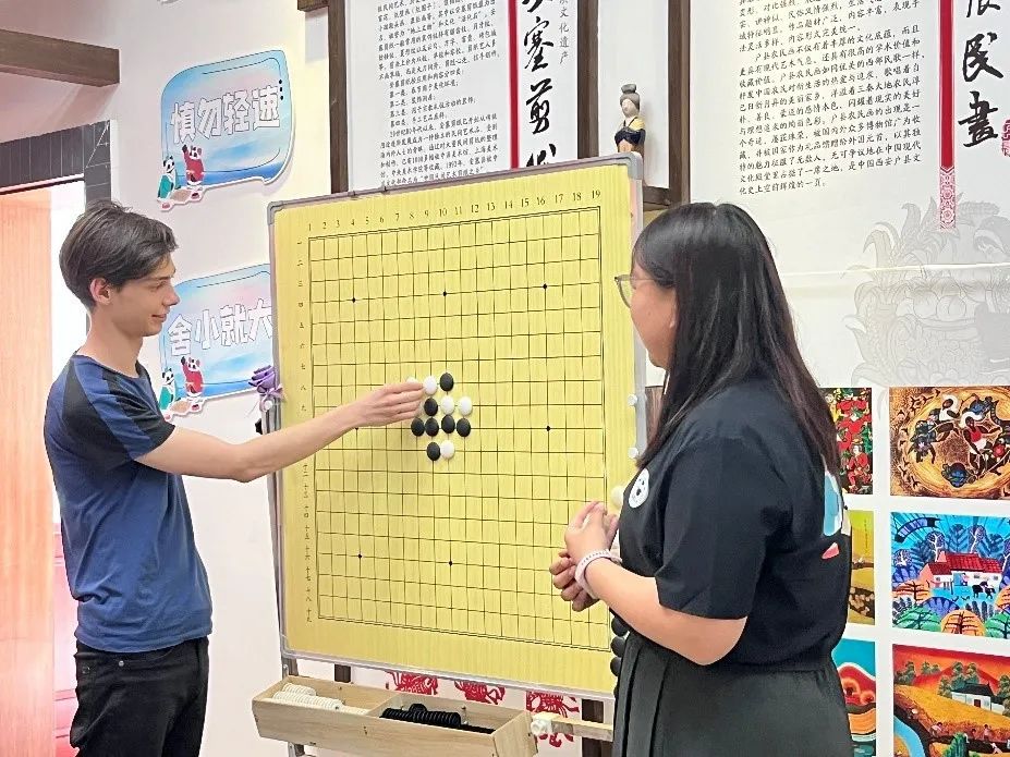 简单讲解后,留学生们就两两一组,开始对弈。围棋是中华民族的文化瑰宝,集智慧、哲学、艺术于一体。通过体验围棋中的乐趣,热爱中华文化的留学生们在助教的指导下,了解游戏规则,逐渐爱上了这个传承千年的古老游戏。