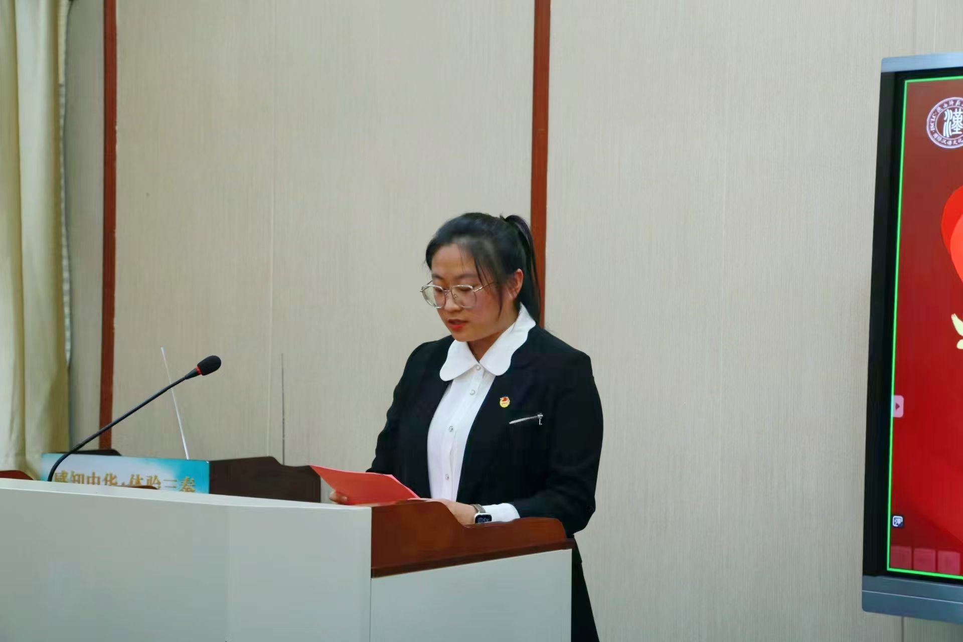 学生代表张凌萱宣读题为“不忘初心担使命,继往开来谱新章”的倡议书,号召全院学子初心不怠,做正直向上的时代新人;继承发展,做“讲好中国故事”的文化使者;求真务实,做祖国需要的青年学子。